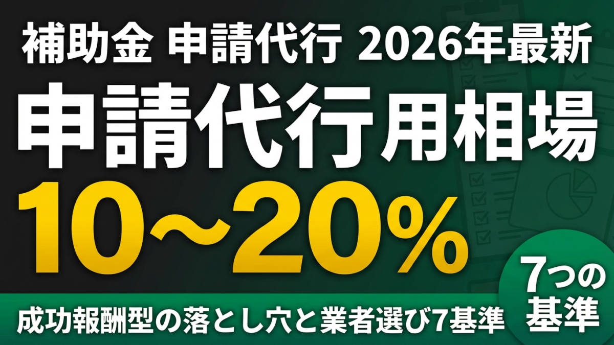 - 補助金の申請代行「成功報酬は10〜20%」が相場(参照日: 2026-03-23)
